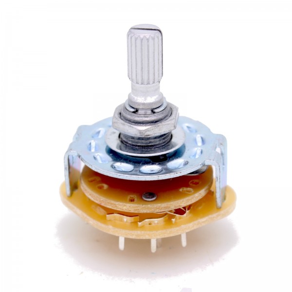 Rotate this rotary switch to connect the 3 common pins to one of the 3 options! This is a 1 to 3 switch with 3 Poles! Meaning you can control up to 3 different circuits with this 1 switch.