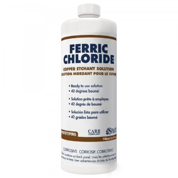 Maximize Ferric Chloride is used to eat away the copper when making your own custom PCBs.